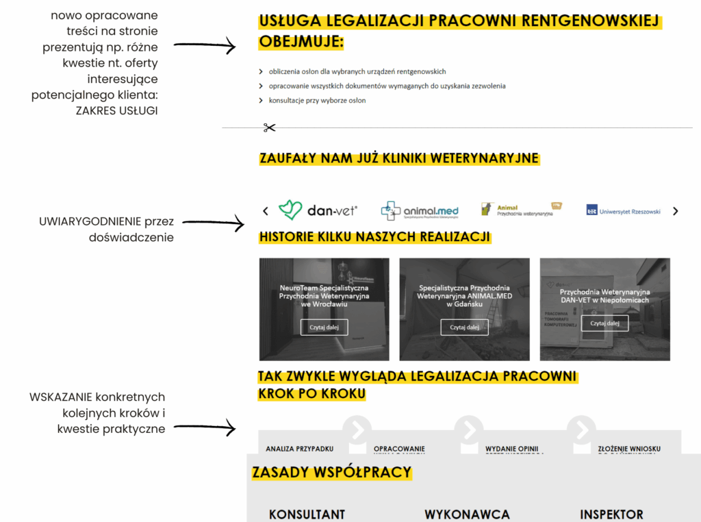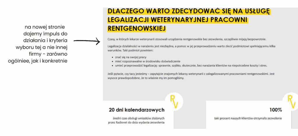 Dzięki świetnej współpracy opisanej powyżej powstała wzorowa strona firmowa Radiovet. Choć legalizacja pracowni rentgenowskich wydaje się tematem wybitnie specjalistycznym, treści są tak przygotowane, że wciągną nawet osoby postronne.