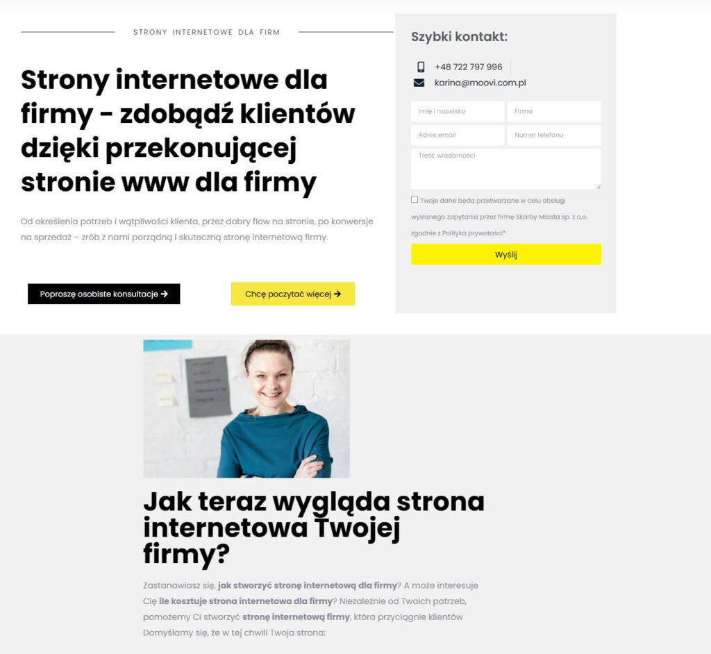 Jakie są sposoby na pozyskanie klientów przez internet? Klienci, którzy piszą lub dzwonią do Moovi, przyznają, że najpierw byli na naszej stronie i przekonała ich do dalszego kontaktu. Oferta, przykłady realizacji, “blogowy” sposób pisania o naszych projektach. Czasem zapisują stronę w ulubionych, na później i prezentują zarządowi na spotkaniu.
