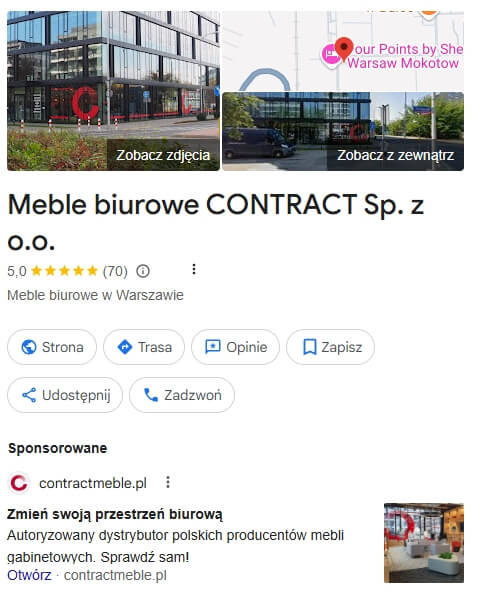– wizytówka Google (profil Moja Firma) i opinie